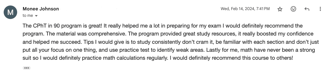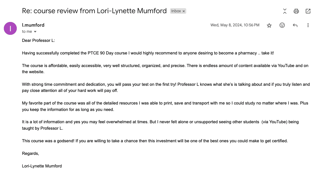 I also have freed up my time to allow you to take advantage of ME and this program, so you can become a CERTIFIED PHARMACY TECHNICIAN in 90 days or less without stress.  Let's do this TOGETHER!